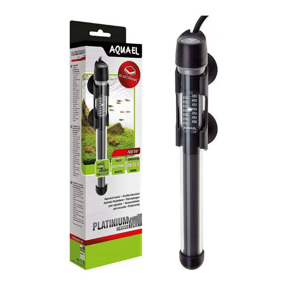 Platinum Heater - Inovadores aquecedores de vidro AQUAEL dotados de termostato eletrônico de precisão. O produto permite o controle de temperatura entre 20°C e 33°C, mantendo-a com uma precisão de +/- 0,4°C.
