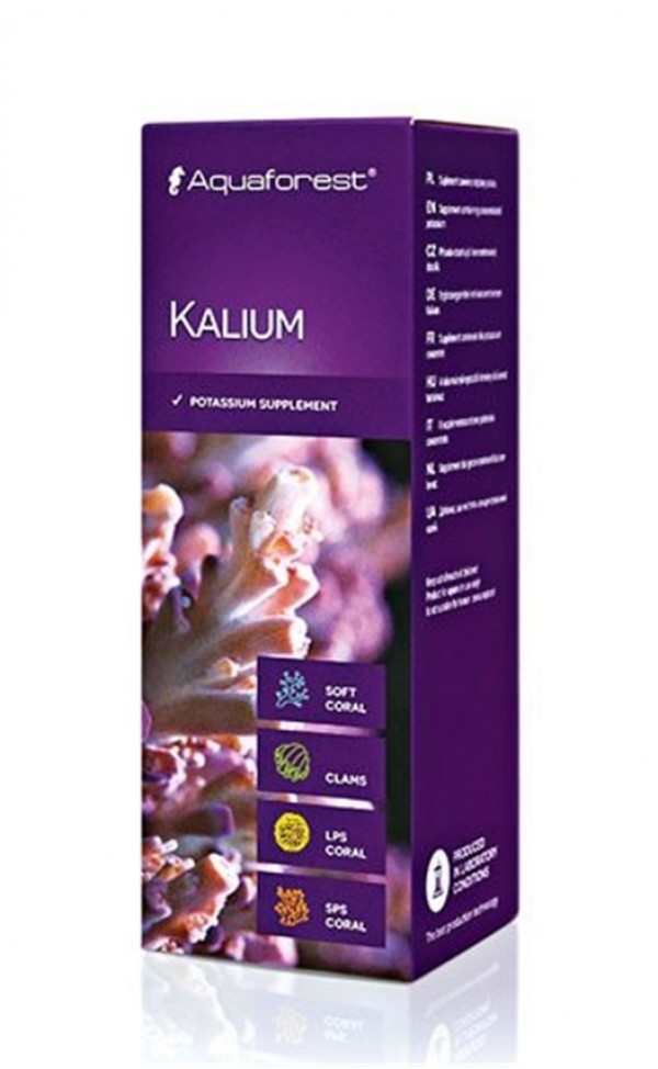 O suplemento contém potássio concentrado. O potássio reforça os tons rosa e vermelho dos corais SPS. Para os corais moles, o potássio desempenha um papel importante no transporte dos componentes nutritivos. A perda de potássio muitas vezes é acompanhada pelo uso de zeólito. O potássio no aquário de recife deve estar no nível de 360-380mg / L. Dosagem: 01 gota para cada 100 litros por dia.