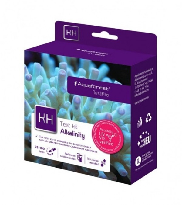 Aquaforest Teste Alkalinity Pro é desenvolvido para medir rapidamente a dureza de carbonato (dKH) e Alcalinidade (meq / L) da água salgada. Os níveis de alcalinidade devem ser analisados regularmente, juntamente com outros parâmetros críticos da água, como cálcio e magnésio. O Nível de dureza de Carbonato recomendado é de: 6.5 – 8.0 dKH. O kit de teste contém reagentes suficientes para realizar aprox. 78-100 testes dentro do intervalo de valores recomendado.