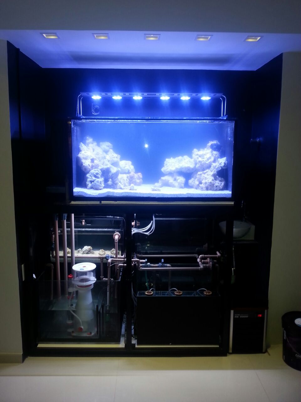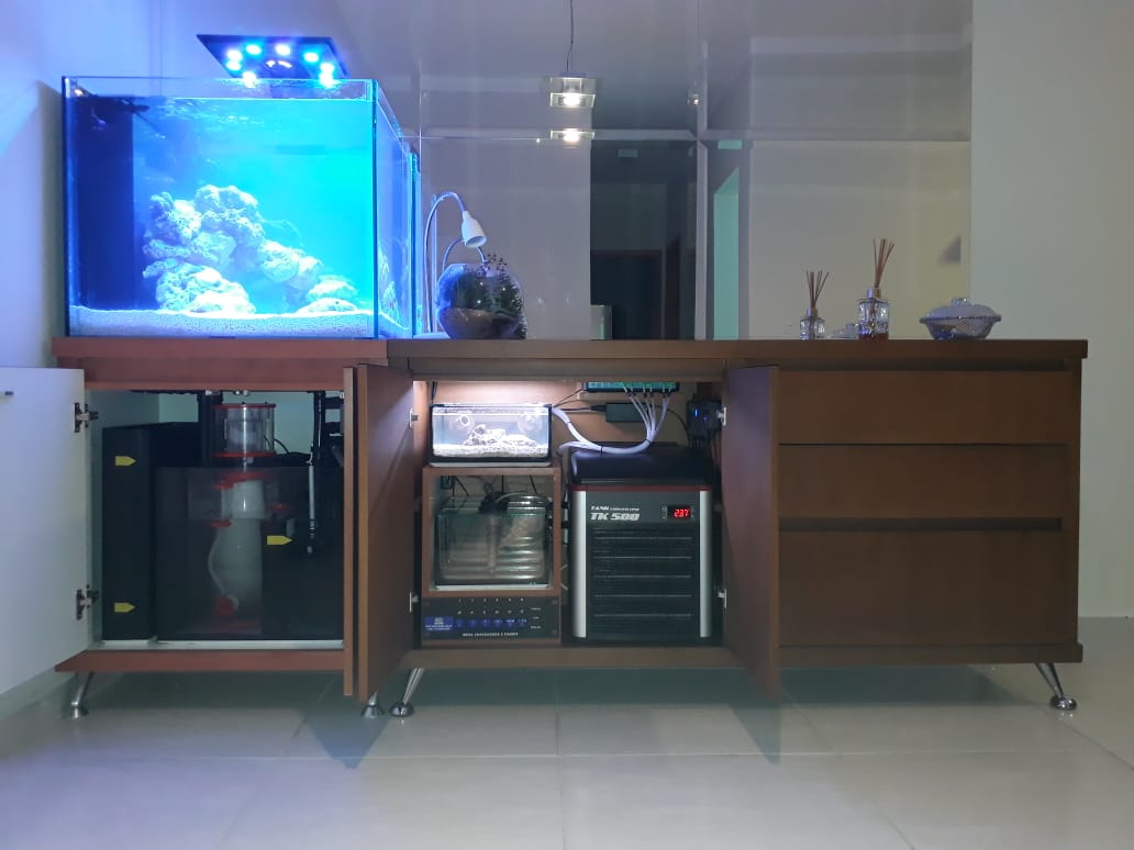 Aquário marinho 250x80x80 sendo montado em uma cobertura na cidade de Campinas, projeto elaborado para ser divisão de ambiente. Cliente a principio queria um aquário apenas para...