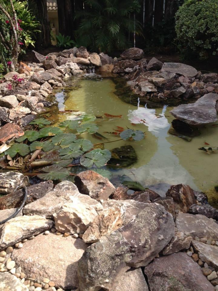 Mini lago de 7000 litros, equipado com 2 filtros Boyu modelo EFU 45000, manta EPDM, filtros UV extra totalizando 72 watts,