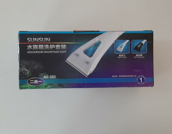 Limpador e raspador para limpeza de vidro de aquários.Marca: Sun SunModelo: AS-102