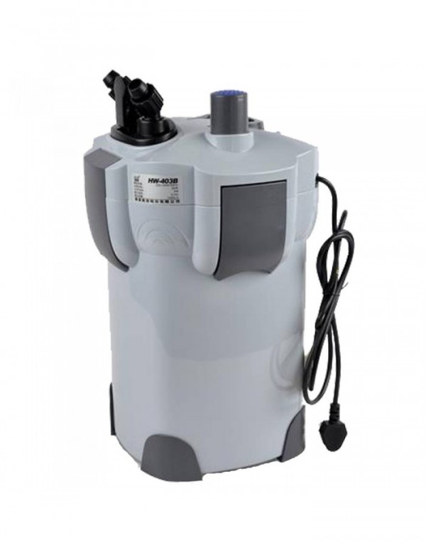 SunSun Filtro Canister HW 404A 2000 L/H 110V - Para aquários de até 500 litros. Característica de alta eficiência, grande capacidade de filtragem mecânica, biológica e química. Multi camadas de filtragem com 03 amplas bandejas para as mídias filtrantes. Entrada e saída de água integrados em uma única válvula, de fácil manuseio e manutenção. Bomba integrada de grande fluxo e alta qualidade, silenciosa em funcionamento. Possui anel de borracha tipo "O'Ring" e trava "Levante & Puxe" para abertura, 100% livre de vazamentos. Pés de borracha para reduzir a vibração. Não acompanha as mídias filtrantes, apenas 1 manta perlon de alta densidade por bandeja. Tensão: 110v Frequência: 60 HZ Potencia: 55 W H-max: 2.5 M Saída: 2000 L/H Dimensões: 290x290x485mm